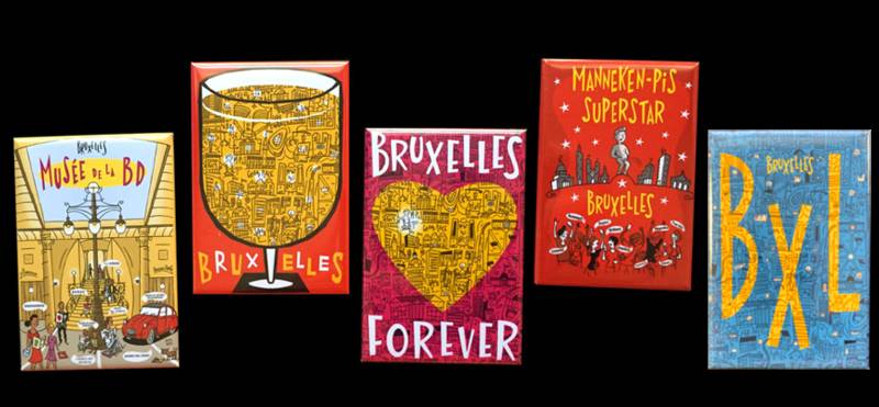 MAGNETS Les cartes postales : - 2 (BXL Bleue) sont également disponibles en magnets 5x8 cm |